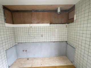 キッチンが低く腰が痛いとのこでキッチンを高くして、吊り戸棚が低いとのことで天井ギリギリまで持っていきました!タイルがない部分にはキッチンパネルを貼り仕上げました!